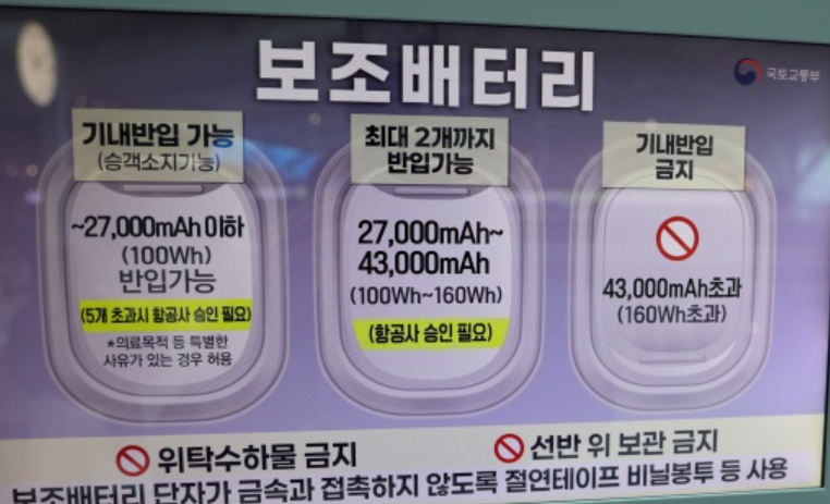 참고: 현행 보조배터리 기내 안전관리의 수량·용량 제한 등 기본 원칙(국제기준 준수)은 그대로 유지됩니다. 세부 허용 용량·개수는 탑승 항공사의 공지·약관을 반드시 확인하세요.