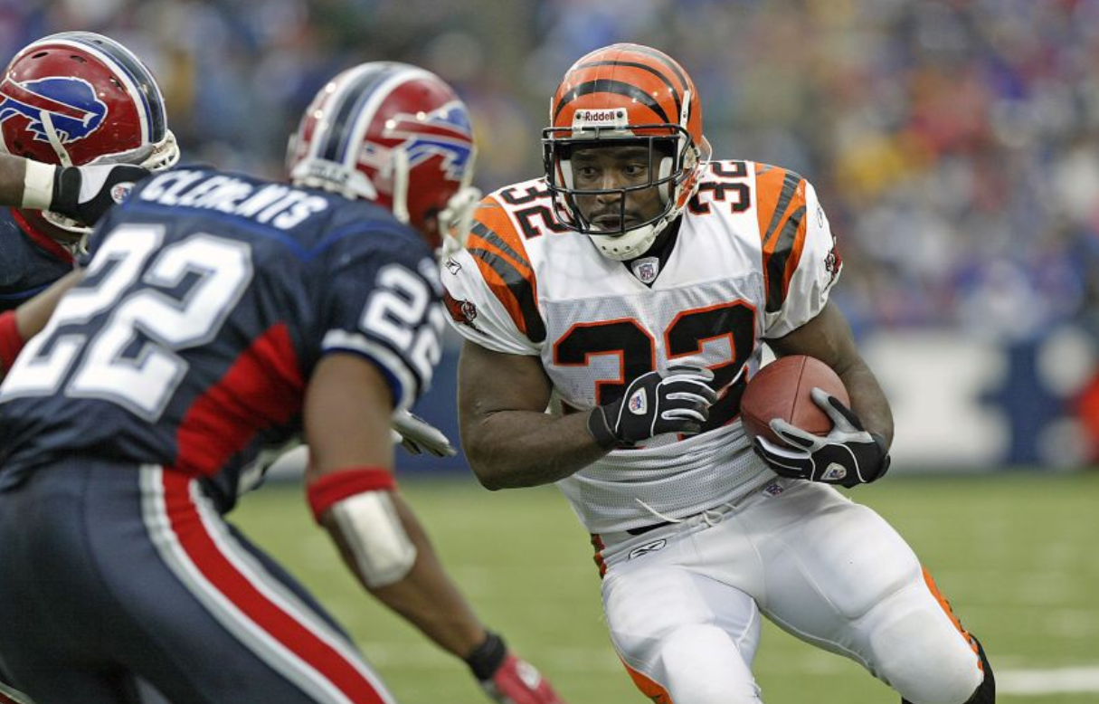Rudi Johnson은 2001년 NFL 드래프트 4라운드에서 Cincinnati Bengals에 지명되어 2001년부터 2007년까지 팀을 대표하는 러닝백으로 활약했습니다. 그는 특히 2004년, 2005년, 2006년 3년 연속 1,000 야드 이상 러싱을 기록하며 팀 공격의 핵심 선수로 자리매김했습니다. 2004년에는 1,454야드 러싱과 12개의 터치다운을 기록하며 프로볼(Pro Bowl)에 선출되었고, Bengals 역사상 세 번째로 많은 48개의 러싱 터치다운을 기록했습니다.