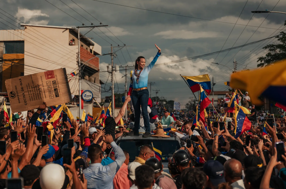 마리아 코리나 마차도는 2024년 베네수엘라 대선을 앞두고 국민의 분열된 야권을 하나로 모으며 강력한 정치적 움직임을 이끌었다. 하지만 니콜라스 마두로 정권은 그녀의 출마를 금지하고, 야권 후보 에드문도 곤살레스(Edmundo González)를 대신 내세웠다. 국제사회가 “부정선거”로 평가한 선거 이후, 마차도는 정부의 탄압을 피해 은신 중이다.