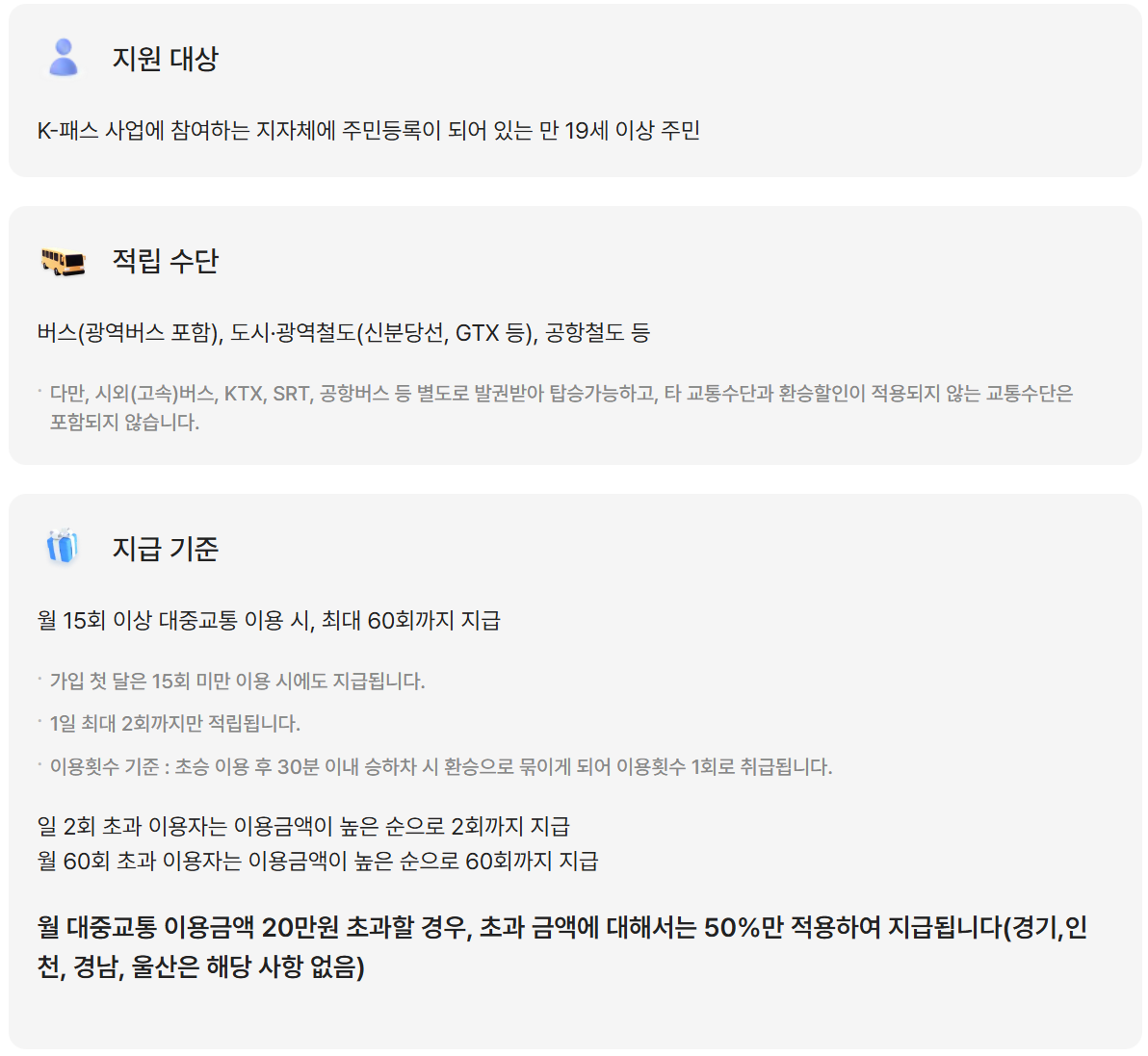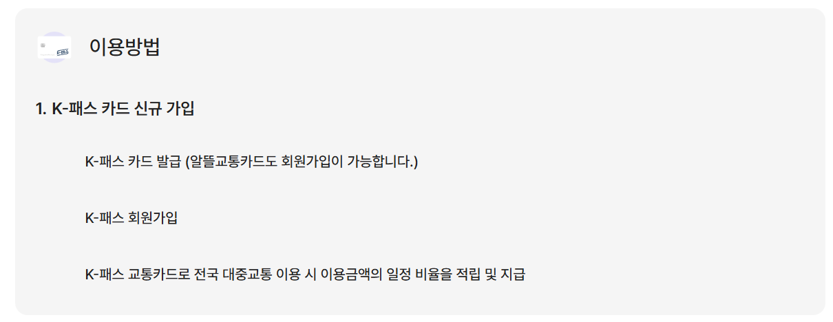 - K-패스 회원 등록 필수: 카드만 발급받는 것으로 끝나는 것이 아닌, K-패스 앱 또는 홈페이지에 카드 등록하여 환급 설정을 해야 합니다.