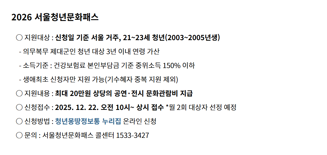 2026 서울청년문화패스 신청방법 총정리|공연·전시 최대 20만원 지원받는 법