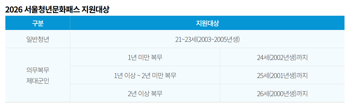 2026 서울청년문화패스 지원 대상