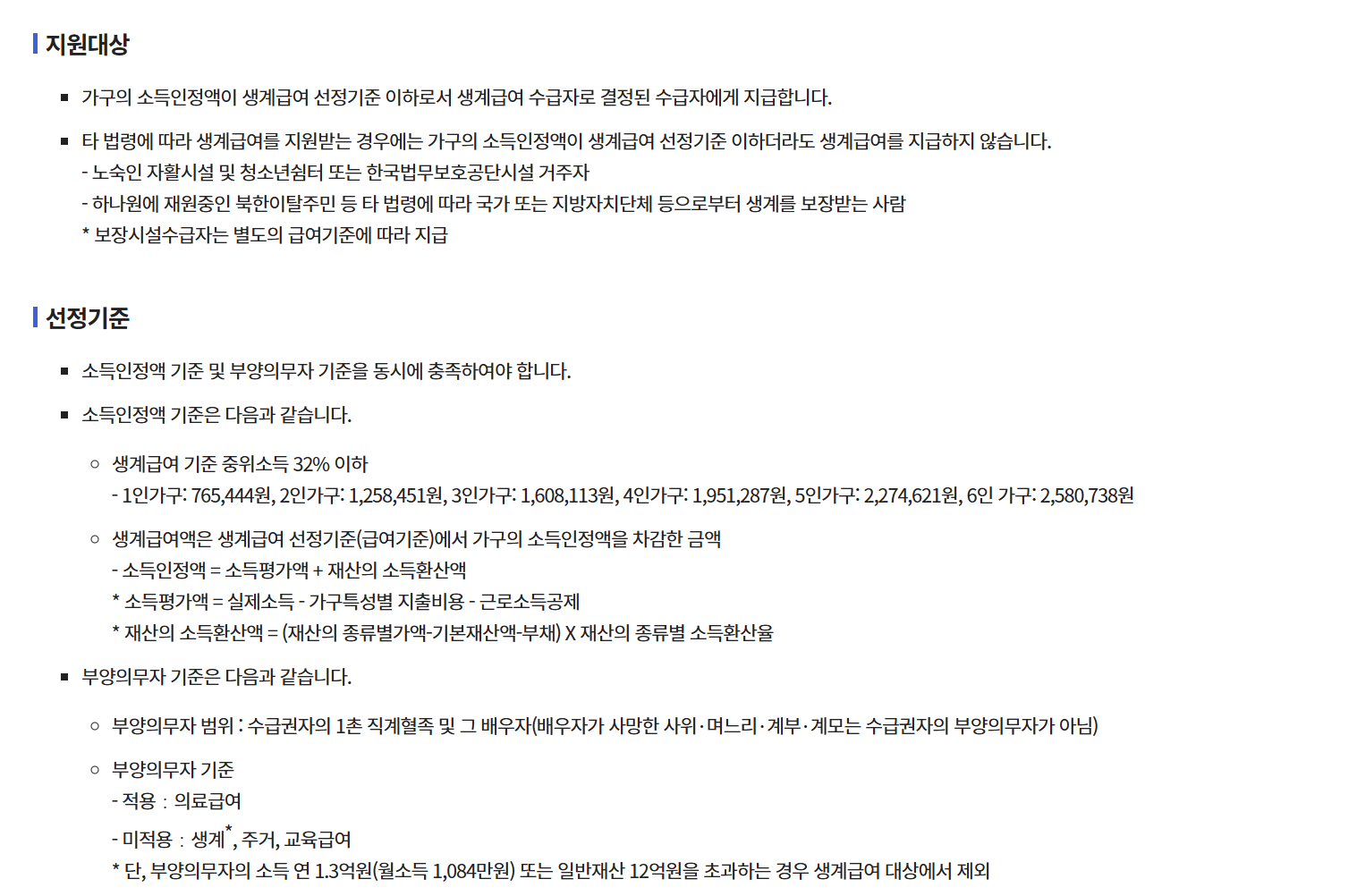 👉 생계급여 수급 기준은 중위소득 30% 이하입니다. 즉, 단순히 “월급이 있다”는 이유만으로 탈락하는 건 아닙니다.