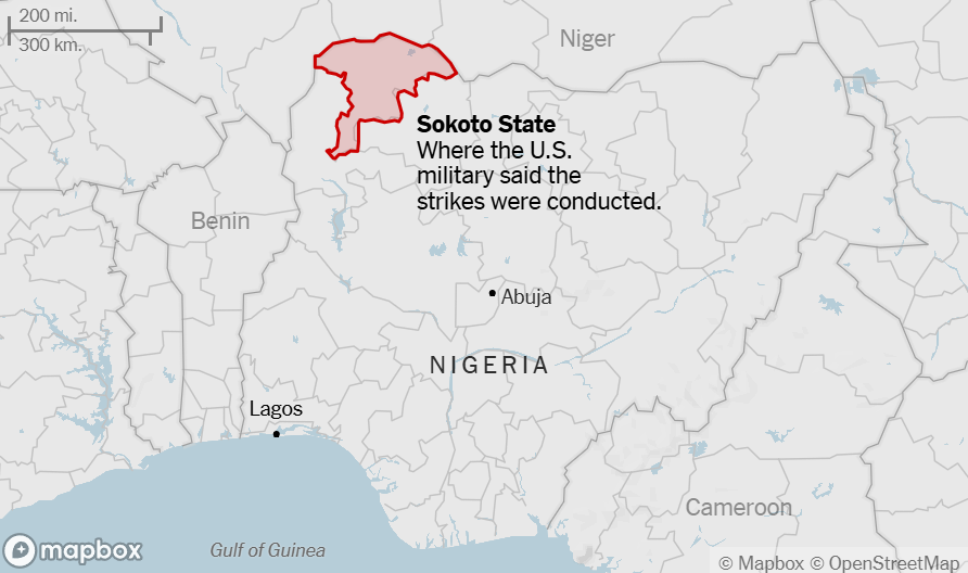 미국 정부는 나이지리아 정부의 요청에 따라 북서부 소코토(Sokoto)주에서 IS 무장세력을 타격하는 공습을 실시했다고 밝혔습니다.