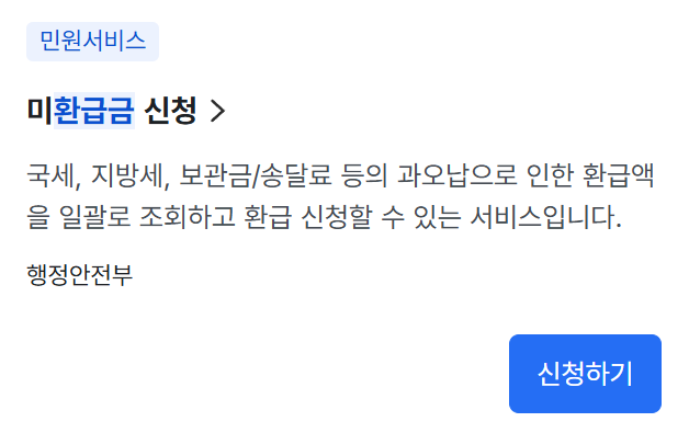 - ✔ 신청하지 않아 못 받은 환급금 확인