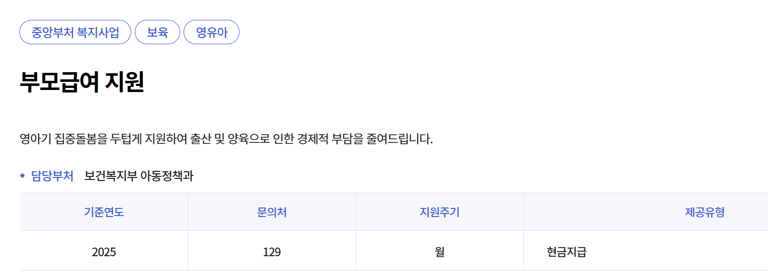 부모급여 지급 금액 한눈에 정리