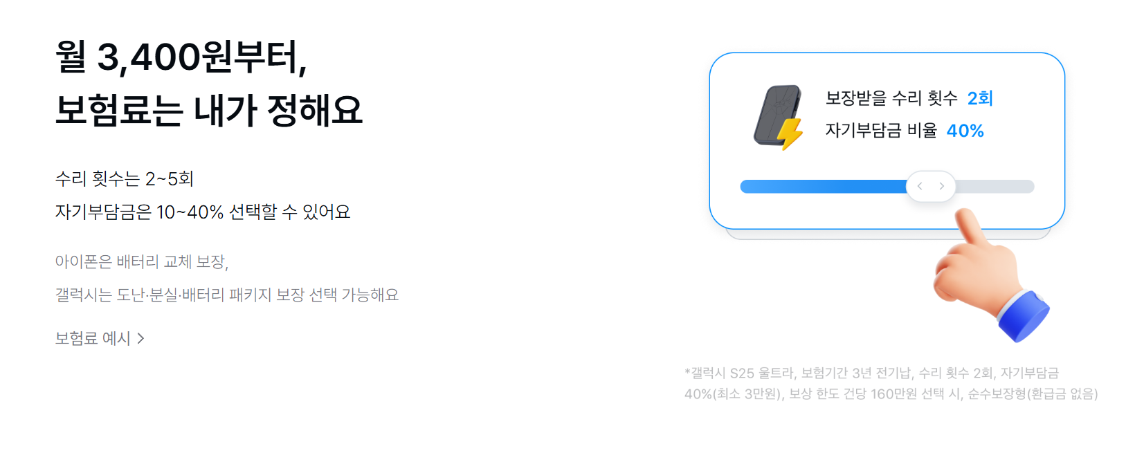 예를 들어 액정 수리비가 100만 원 발생할 경우, 자기부담금 10%면 실제 부담은 10만 원에 불과합니다. 고가 스마트폰 이용자일수록 체감 차이는 더욱 커집니다.