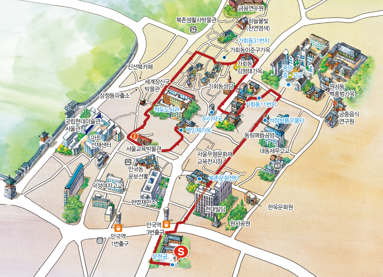 서울도보해설관광 북촌 한옥마을 코스는 운현궁에서 출발해 북촌의 핵심 명소를 순환하는 동선입니다.