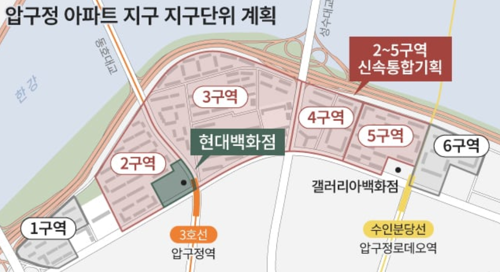 - 압구정 아파트 재건축이 본격화되면서 상권·수요가 크게 확대될 가능성