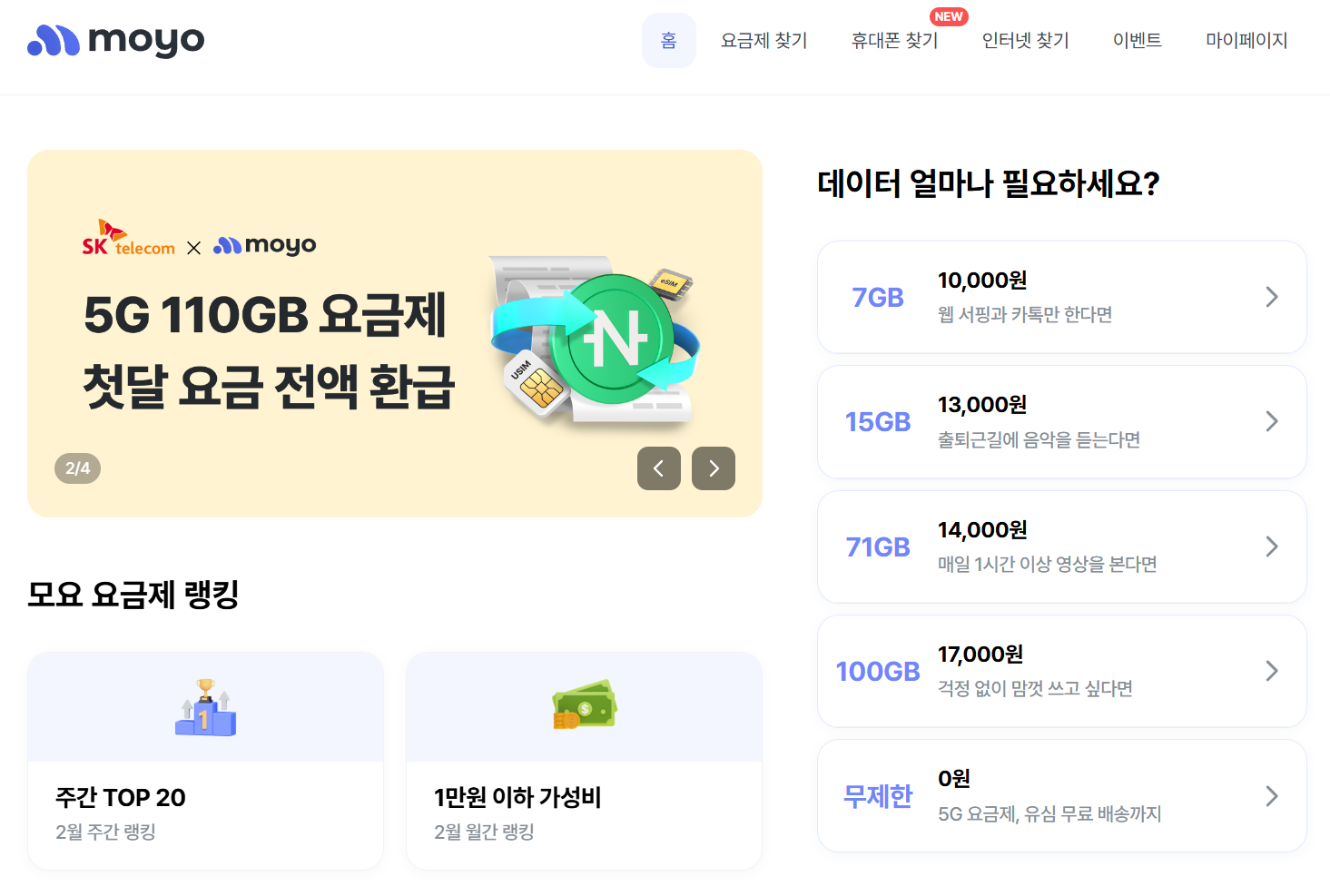 알뜰폰 요금제 비교 바로하기