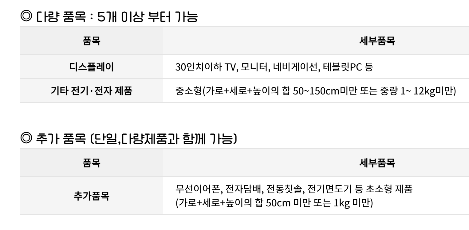 ② 중소형 가전도 가능 (지역 기준 확인)